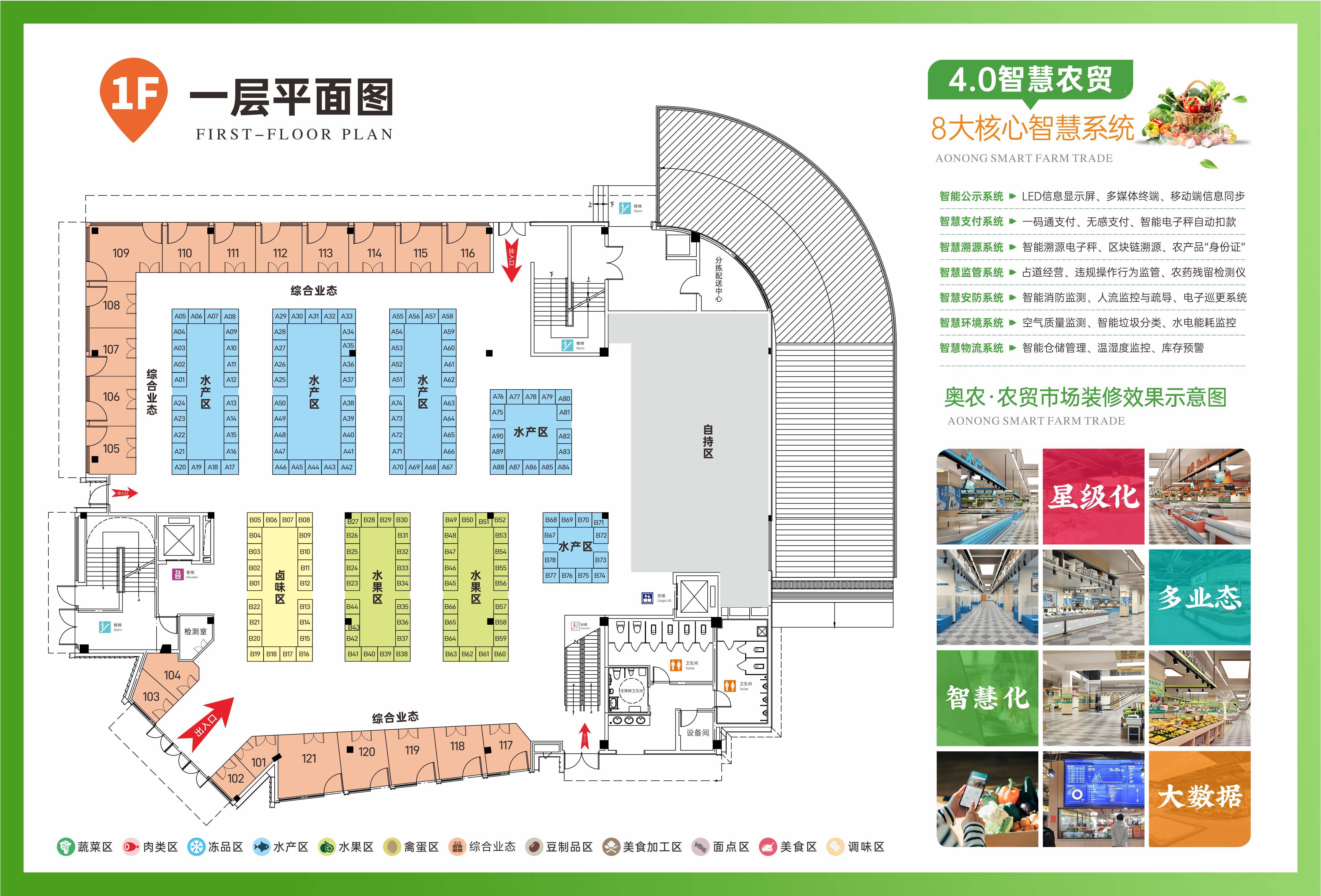 让人深居简出,内部配套地方空调、新风系统、部门派套运营用品全业态聪慧农贸市场,